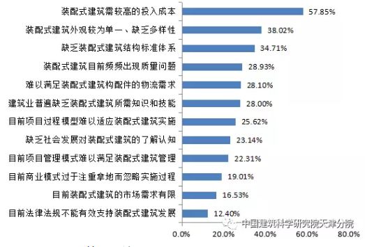 根據(jù)優(yōu)采大數(shù)據(jù)平臺(tái)對(duì)已建設(shè)裝配式建筑項(xiàng)目的開發(fā)商數(shù)據(jù)統(tǒng)計(jì)顯示,開發(fā)商認(rèn)為制約裝配式建筑發(fā)展的阻力主要有:技術(shù)不成熟、上下游產(chǎn)業(yè)不健全,標(biāo)準(zhǔn)不健全,成本增加和設(shè)計(jì)施工一體化管理難度增大等。