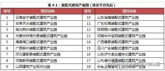 裝配式建筑項(xiàng)目的建設(shè)直接帶動(dòng)了設(shè)計(jì)、施工、部品部件生產(chǎn)、裝配化裝修、設(shè)備制造、運(yùn)輸物流及相關(guān)配套等全產(chǎn)業(yè)鏈的發(fā)展,目前全國有至少18個(gè)裝配式建筑產(chǎn)業(yè)園已建成或處于規(guī)劃階段。