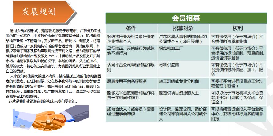通過會員加盟的形式,建鋼聯(lián)將服務(wù)于廣東省乃至全國的每一位客戶。未來加強(qiáng)資源整合能力,積極向鋼結(jié)構(gòu)產(chǎn)業(yè)鏈上下游延伸,開發(fā)新產(chǎn)品、新技術(shù)、新服務(wù)。