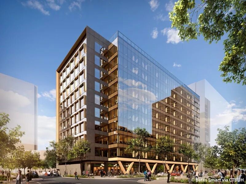 SOM 的木結構高層重新設想了1960年德威特的混凝土大廈使用木材建造的情況。前期的實驗推動使得這座建筑可以挑戰(zhàn)40層的高度范圍,其使用了混凝土核心筒并結合了混凝土的框架。