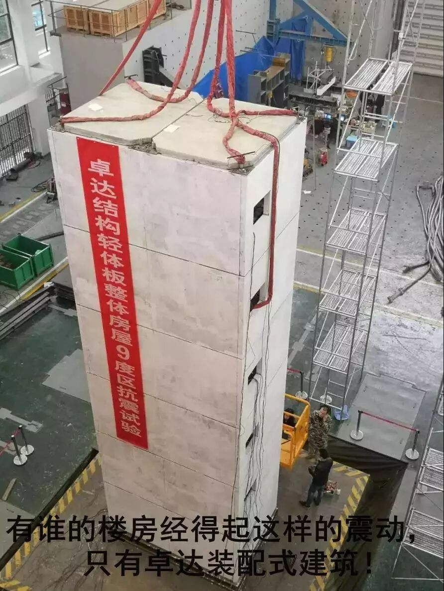 卓達同哈工大聯(lián)合研發(fā),卓達擁有核心技術(shù)、全新自主知識產(chǎn)權(quán)的全裝配式輕體板房屋“創(chuàng)盛一號”在重慶大學(xué)振動臺實驗室順利完成了 9°抗震實驗,在 9°罕遇地震下“創(chuàng)盛一號”所有部件包括樓板、墻板及連接節(jié)點等均未出現(xiàn)任何損傷和破壞, 這一成果標志歷時兩年卓達全裝配式9°抗震巨無霸“創(chuàng)盛一號” 研發(fā)成功。