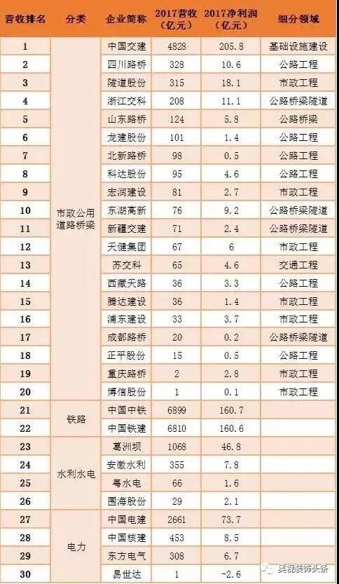 以下為各細(xì)分行業(yè)上市建筑企業(yè)詳細(xì)名單: