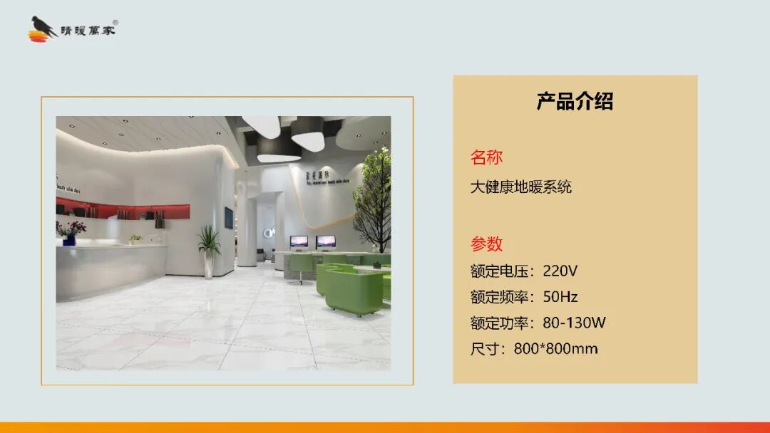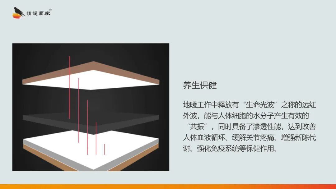 廣東和暖科技股份有限公司 公司在原專業(yè)研發(fā)生產(chǎn)地磚的基礎(chǔ)上,本著以人為本的自然規(guī)律,以節(jié)能、環(huán)保、健康為導(dǎo)向,運用以多普勒效應(yīng)原理設(shè)計石墨烯遠紅外發(fā)熱系統(tǒng)為核心進行產(chǎn)品的創(chuàng)新,研發(fā)出革命性的新產(chǎn)品:“大健康地暖系統(tǒng)”。